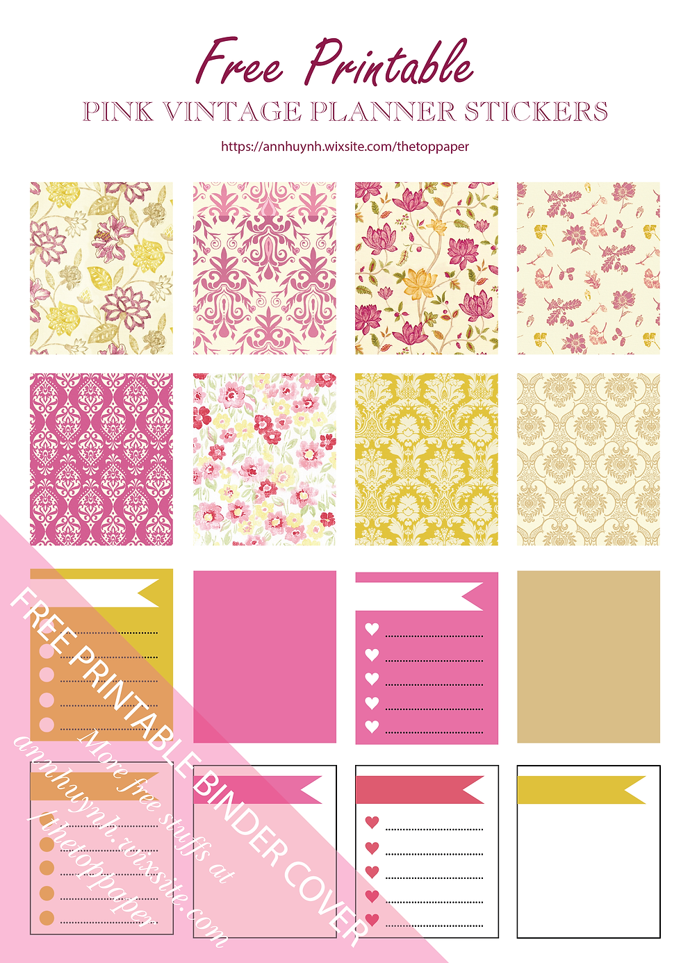 FREE Printable Box planner stickers: "PINK VINTAGE" Printable | Digital | Planner stickers